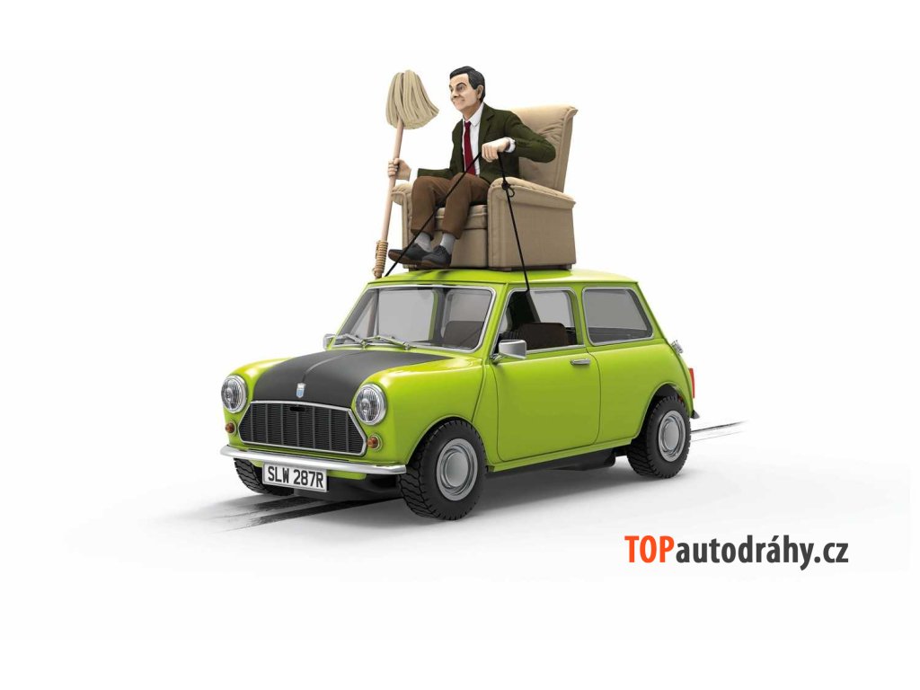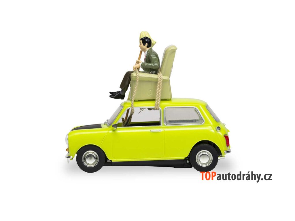 Autíčko pro autodráhu. Velikost: 1:32, 12 cm.Pokud jde o ikonické vozy, Austin Citron Green BL Mini 1000 je pravděpodobně jedním z nejznámějších automobilů z filmového plátna. Jeden z nejnovějších přírůstků v nabídce Scalextric vychází z epizody "Udělej si sám, pane Beane", v níž pan Bean legendárním způsobem převáží nové křeslo na střeše svého Mini. Tato nehynoucí komediální klasika, kterou pan Bean tak chytře řídil pomocí svého důmyslného improvizovaného mechanismu, se stane odvážným doplňkem každé autodráhy.