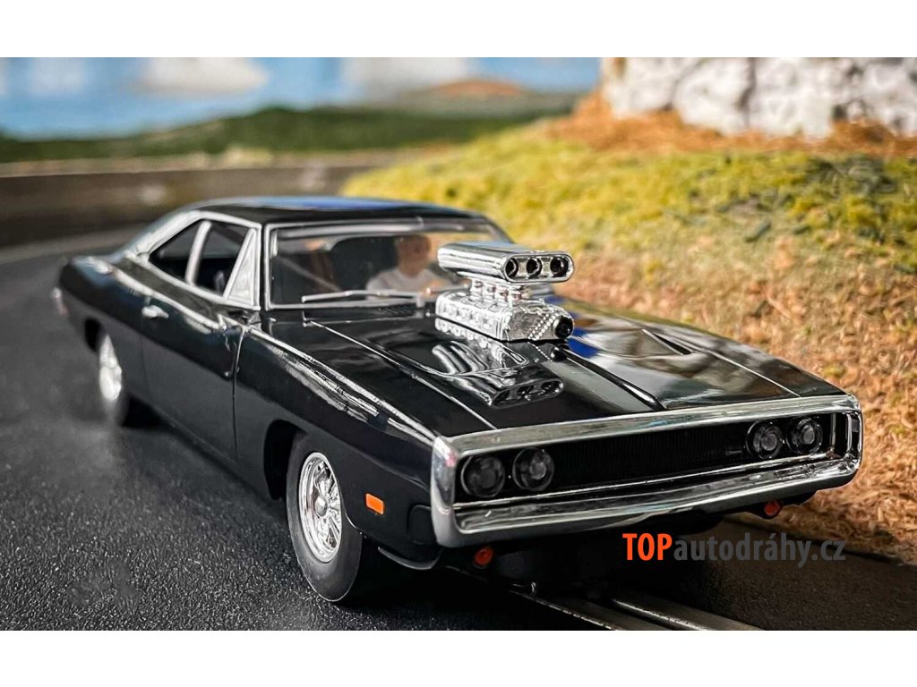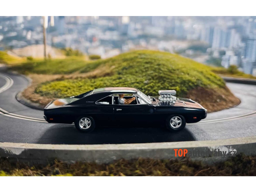 Ať už se Domův Charger prohání ulicemi nebo provádí odvážné loupeže, je stvořen pro rychlost a výdrž. Díky černému laku, odkrytému motoru a impozantní mřížce chladiče je na plátně i na dráze Scalextric opravdu výjimečným vozem.