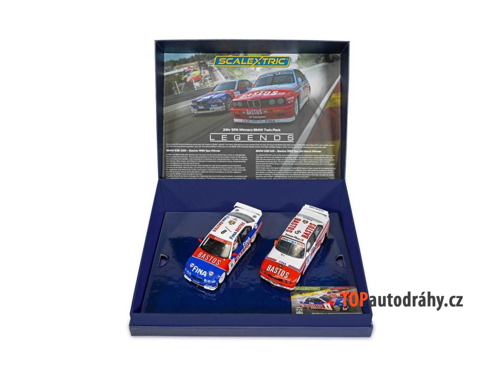 Autíčka pro autodráhu. Velikost: 1:32, 14 cm.Oslavte dvě ikonická vítězství v legendárních lázních 24 hodin s tímto ohromujícím BMW Twin Pack, který obsahuje vozy z let 1992 a 1995. Oba stroje, oblečené do svých výrazných červených, modrých a bílých livrejí, předvádějí v této éře dominanci BMW ve vytrvalostních závodech.