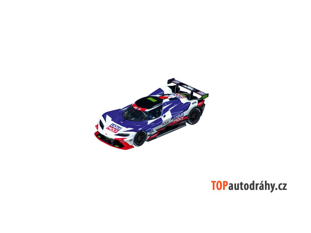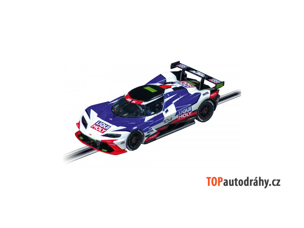 KTM X-BOW GTX "Liqui Moly, No.104" Auto pro autodráhu řady Evolution v měřítku 1:32 (27745). Auto obsahuje dvojité kontaktní kartáčky, magnet a vodící lištu. V balení jsou náhradní kontaktní kartáčky, vodící lišta + příslušenství na auto. Funkční přední a zadní světla. Seznam náhradních dílů je uveden v záložce Soubory.