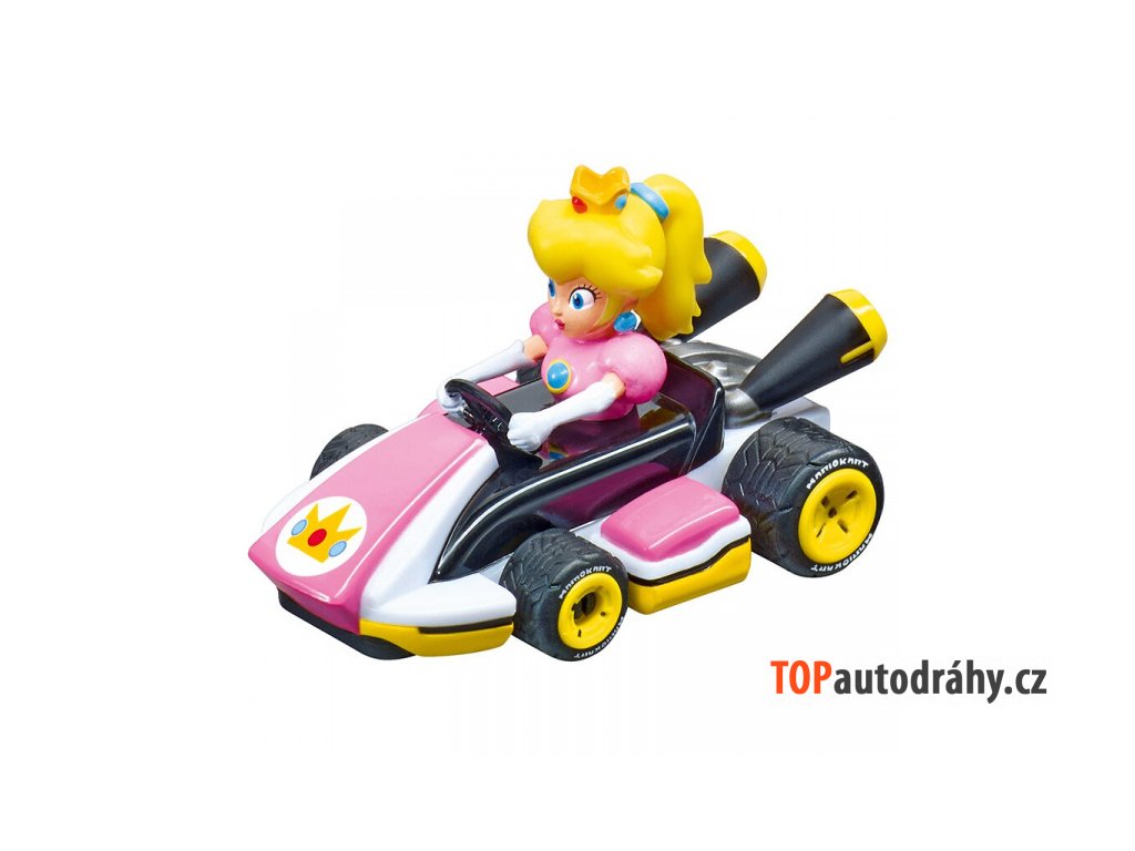 Autodráha Carrera FIRST dlouhá 2,4m s auty Mario a Peach od Nintenda, pro děti od 3 let, na baterie, obsahuje rovinky, zatáčky, vrtule pro větší zábavu při jízdě, ovladače a dekorace s tématikou Nintendo.