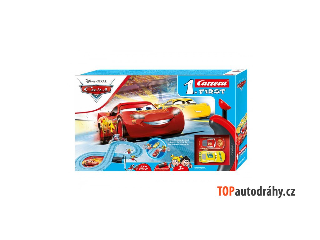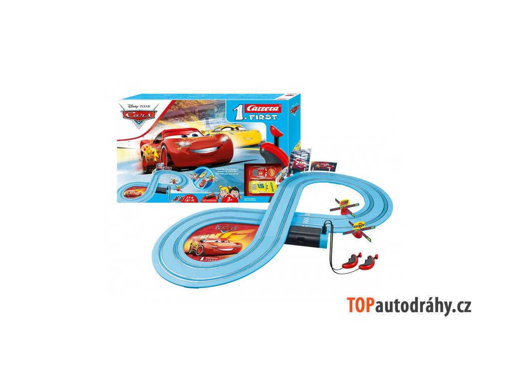 Produkt má poškozený obal, zboží je funkční a nepoškozené Zboží můžete reklamovat do 2 let od zakoupení. Autodráha Carrera FIRST dlouhá 2,4m s auty Blesk McQueen a Dinoco Cruz z filmu CARS, pro děti od 3 let, na baterie, obsahuje rovinky, zatáčky, točíčí bránu, ovladače a dekorace s tématikou CARS. Délka trati: 2,4m Rozměry po sestavení: 93 x 45 cm Obsah balení: 1x auto Blesk McQueen 1x auto Dinoco Cruz Ramirez rovinky zatáčky točící brána pro větší zábavu při průjezdech 1x napájecí díl 2x ovladač rychlosti Podpěry, mantinely, návod Neobsahuje baterie (4x C) FIRST – první autodráha pro děti od 3 let - měřítko dráhy 1:50 - měřítko aut 1:50 - analogový autodráhový systém - autodráha na baterie (4x baterie C) - doba jízda až 6 hodin - všechna auta mají kontaktní kartáčky pro lepší přilnavost k dráze - všechna auta mají magnet - díky systému svorek se dráha snadno sestavuje i rozebírá - přesné a stabilní provedení drah, včetně výškově nastavitelných podpěr - detailní, tampónově potištěné vozy - originální licence Disney-Pixar Cars, Tlapková patrola, Mickey Mouse, Nintendo - velmi kvalitní zpracování - sety obsahují napájecí díl, 2x ovladač rychlosti, 2x auto, mantinely, spojky dráhy, český návod - vhodné pro děti od 3 let CARRERA znamená ve španělštině závod a jedno Vám můžeme zaručit. Jakmile rozbalíte krabici s logem Carrera, rozproudí se Vaše závodní krev na nejvyšší otáčky a je jedno na jakém okruhu a s jakým autem budete zrovna závodit. Tento pocit zažívají tisíce fanoušků již od roku 1963, kdy značka Carrera spatřila svou první závodní dráhu. Během následujících více než čtyřiceti let, se Carrera probojovala až na úplnou špičku v oblasti autodráh, aut a jejich příslušenství. Dnes nabízí produkty nejvyšší kvality, které jsou určené nejen dětem ale i dospělým, pro které se staly autodráhy hobby na celý život.Doplňkové parametry