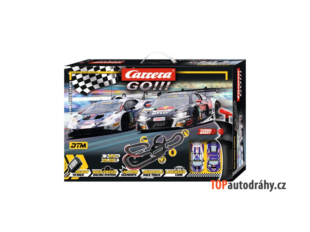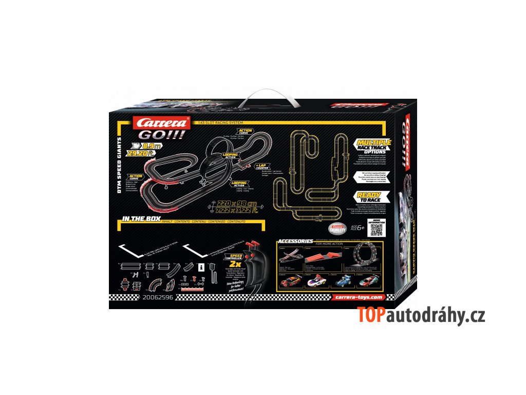 Produkt má poškozený obal, zboží je funkční a nepoškozené Zboží můžete reklamovat do 2 let od zakoupení. Autodráha Carrera GO!!! dlouhá 8,9m s auty GT3 Audi R8 LMS a Lamborghini Huracán, obsahuje looping, klopenou zatáčku, kolmou stěnu, rovinky, zatáčky, díl s počítadlem kol a další díly. Můžete si sestavit další různé trati podle své fantazie. Nejdelší set GO!!! Délka trati: 8,9 m Rozměry po sestavení: 220 x 98 cm Obsah balení: 1x auto Audi R8 LMS GT3 evo II DTM "Abt, F.Feller, No.7" 1x auto Lamborghini Huracán GT3 EVO2 "Luca Engstler, No.19" 2024 rovinky klopená zatáčka looping zatáčky 1x napájecí díl (61666) 1x díl s počítadlem kol (88107) 2x ovladač rychlosti (61663) 1x trafo Podpěry, mantinely, kontaktní kartáčky, vodící lišty, návod GO!!! - Turbo rychlost ve světě autodráh Carrera měřítko dráhy 1:43 měřítko aut 1:43 všechny sety jsou vybaveny ovladačem rychlosti s funkcí Turbo všechna auta mají dvojité kontaktní kartáčky pro lepší přilnavost k dráze všechna auta mají magnet díky systému svorek se dráha snadno sestavuje i rozebírá přesné a stabilní provedení drah, včetně výškově nastavitelných podpěr detailní, tampónově potištěné vozy exkluzivní celosvětová licence aut F1 Ferrari, Red Bull originální licence Tlapková Patrola, Mimoni, Disney-Pixar Cars, Star Wars, Nintendo, Sonic široká nabídka příslušenství (most, počítadlo kol, skokánek, kruhový objezd, rozšiřující sety, rallye díly a další díly pro ještě větší zábavu pří závodění velmi kvalitní zpracování sety obsahují napájecí díl, mechanické počítadlo kol, 2x ovladač rychlosti, 2x auto, mantinely, spojky dráhy, český návod vhodné pro děti od 6 let součástí každého setu jsou náhradní kontaktní kartáčky pro auta analogový autodráhový systém CARRERA znamená ve španělštině závod a jedno Vám můžeme zaručit. Jakmile rozbalíte krabici s logem Carrera, rozproudí se Vaše závodní krev na nejvyšší otáčky a je jedno na jakém okruhu a s jakým autem budete zrovna závodit. Tento pocit zažívají tisíce fanoušků již od roku 1963, kdy značka Carrera spatřila svou první závodní dráhu. Během následujících více než čtyřiceti let, se Carrera probojovala až na úplnou špičku v oblasti autodráh, aut a jejich příslušenství. Dnes nabízí produkty nejvyšší kvality, které jsou určené nejen dětem ale i dospělým, pro které se staly autodráhy hobby na celý život.Doplňkové parametry