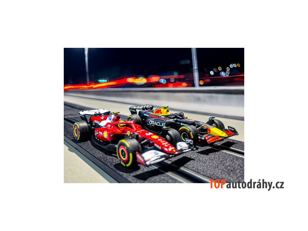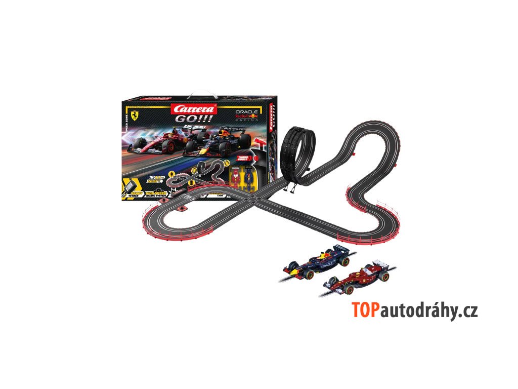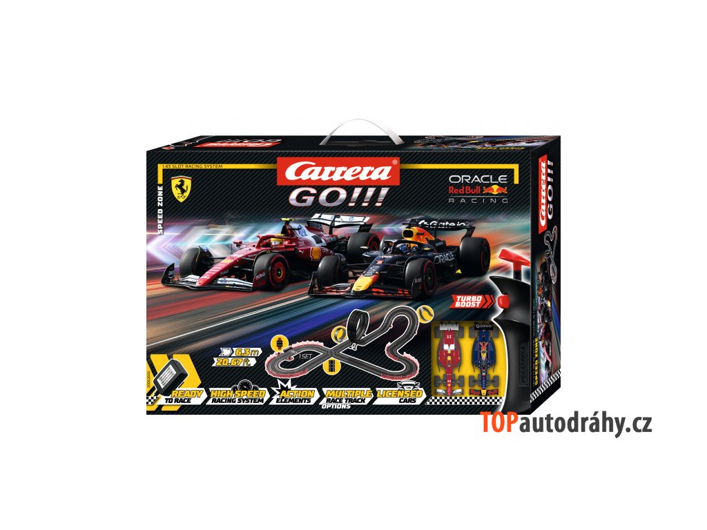 Produkt má poškozený obal, zboží je funkční a nepoškozené Zboží můžete reklamovat do 2 let od zakoupení. Autodráha Carrera GO!!! dlouhá 6,3m s auty F1 Red Bull a Ferrari, obsahuje, křižovatku, rovinky, zatáčky, kolmou stěnu, looping, díl s počítadlem kol a další díly. Můžete si sestavit další různé trati podle své fantazie. Délka trati: 6,3 m Rozměry po sestavení: 175 x 122 cm Obsah balení: 1x auto Oracle Red Bull Racing RB21 "M.Verstappen, No.1" (2025) 1x auto Ferrari SF-25 "L.Hamilton, No.44" (2025) rovinky looping kolmá stěna zatáčky 1x napájecí díl (61666) 1x díl s počítadlem kol (88107) 2x ovladač rychlosti (61663) 1x trafo Podpěry, mantinely, kontaktní kartáčky, vodící lišty, návod GO!!! - Turbo rychlost ve světě autodráh Carrera měřítko dráhy 1:43 měřítko aut 1:43 všechny sety jsou vybaveny ovladačem rychlosti s funkcí Turbo všechna auta mají dvojité kontaktní kartáčky pro lepší přilnavost k dráze všechna auta mají magnet díky systému svorek se dráha snadno sestavuje i rozebírá přesné a stabilní provedení drah, včetně výškově nastavitelných podpěr detailní, tampónově potištěné vozy exkluzivní celosvětová licence aut F1 Ferrari, Red Bull originální licence Tlapková Patrola, Mimoni, Disney-Pixar Cars, Star Wars, Nintendo, Sonic široká nabídka příslušenství (most, počítadlo kol, skokánek, kruhový objezd, rozšiřující sety, rallye díly a další díly pro ještě větší zábavu pří závodění velmi kvalitní zpracování sety obsahují napájecí díl, mechanické počítadlo kol, 2x ovladač rychlosti, 2x auto, mantinely, spojky dráhy, český návod vhodné pro děti od 6 let součástí každého setu jsou náhradní kontaktní kartáčky pro auta analogový autodráhový systém CARRERA znamená ve španělštině závod a jedno Vám můžeme zaručit. Jakmile rozbalíte krabici s logem Carrera, rozproudí se Vaše závodní krev na nejvyšší otáčky a je jedno na jakém okruhu a s jakým autem budete zrovna závodit. Tento pocit zažívají tisíce fanoušků již od roku 1963, kdy značka Carrera spatřila svou první závodní dráhu. Během následujících více než čtyřiceti let, se Carrera probojovala až na úplnou špičku v oblasti autodráh, aut a jejich příslušenství. Dnes nabízí produkty nejvyšší kvality, které jsou určené nejen dětem ale i dospělým, pro které se staly autodráhy hobby na celý život.Doplňkové parametry